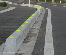 - 「R-2-Y-Y オールイエロー」「R-2-R-R オールレッド」「R-2-G-G オールグリーン」を新たにラインアップ。朝方・夕方の薄暮時に蛍光色が鮮やかに浮かび上がり歩車道の区分をハッキリさせる。ドライバーだけではなく、歩行者の注意喚起にも一役かえる昼夜兼用道路鋲です。