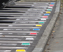 専用接着剤で貼るだけですから路面を傷めることなく、また特殊工具等も不要で簡単に施工できます。